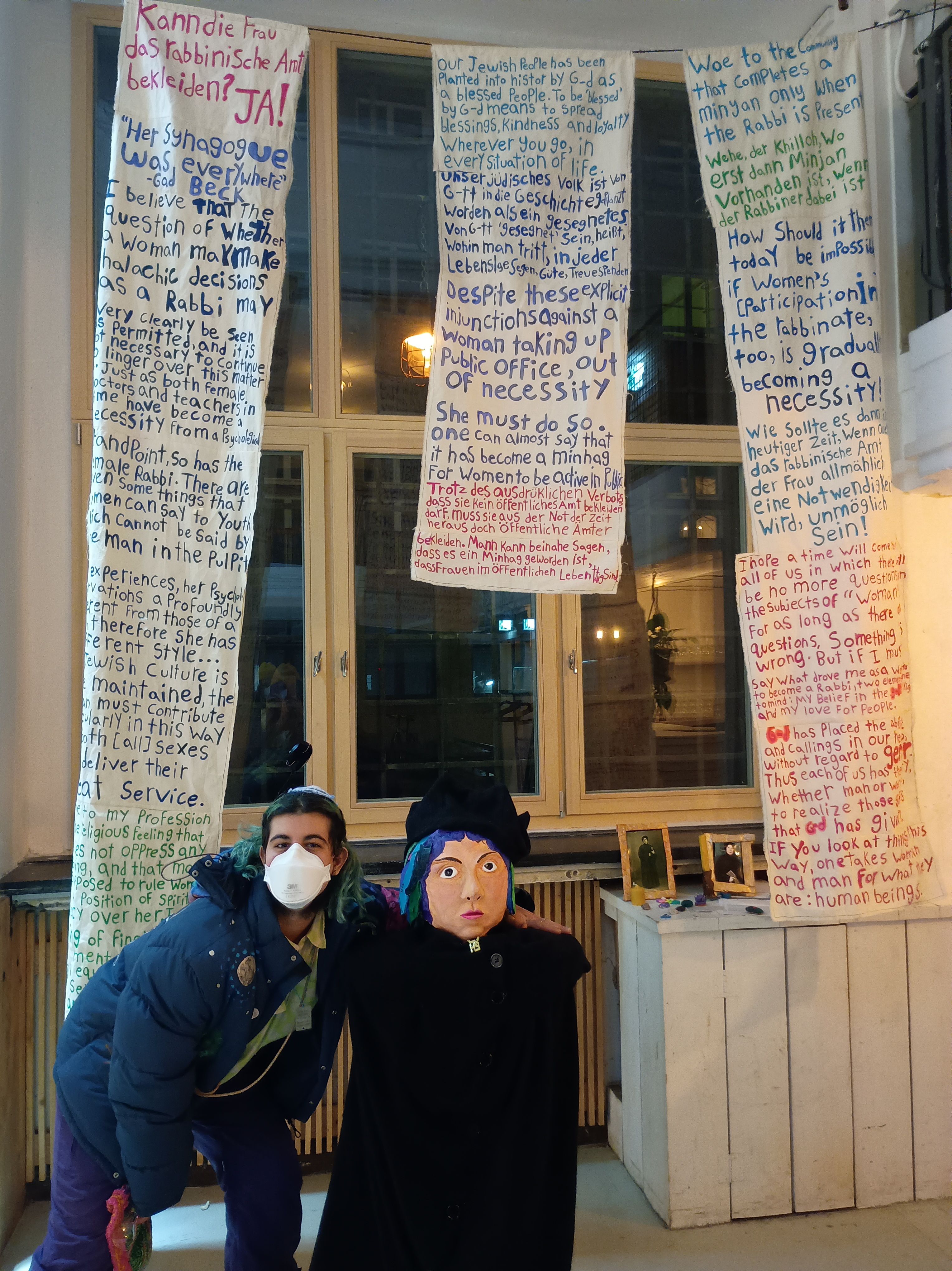 The rest of the words written on the flags are quotes and translations by Rabbi Regina Jonas herself.