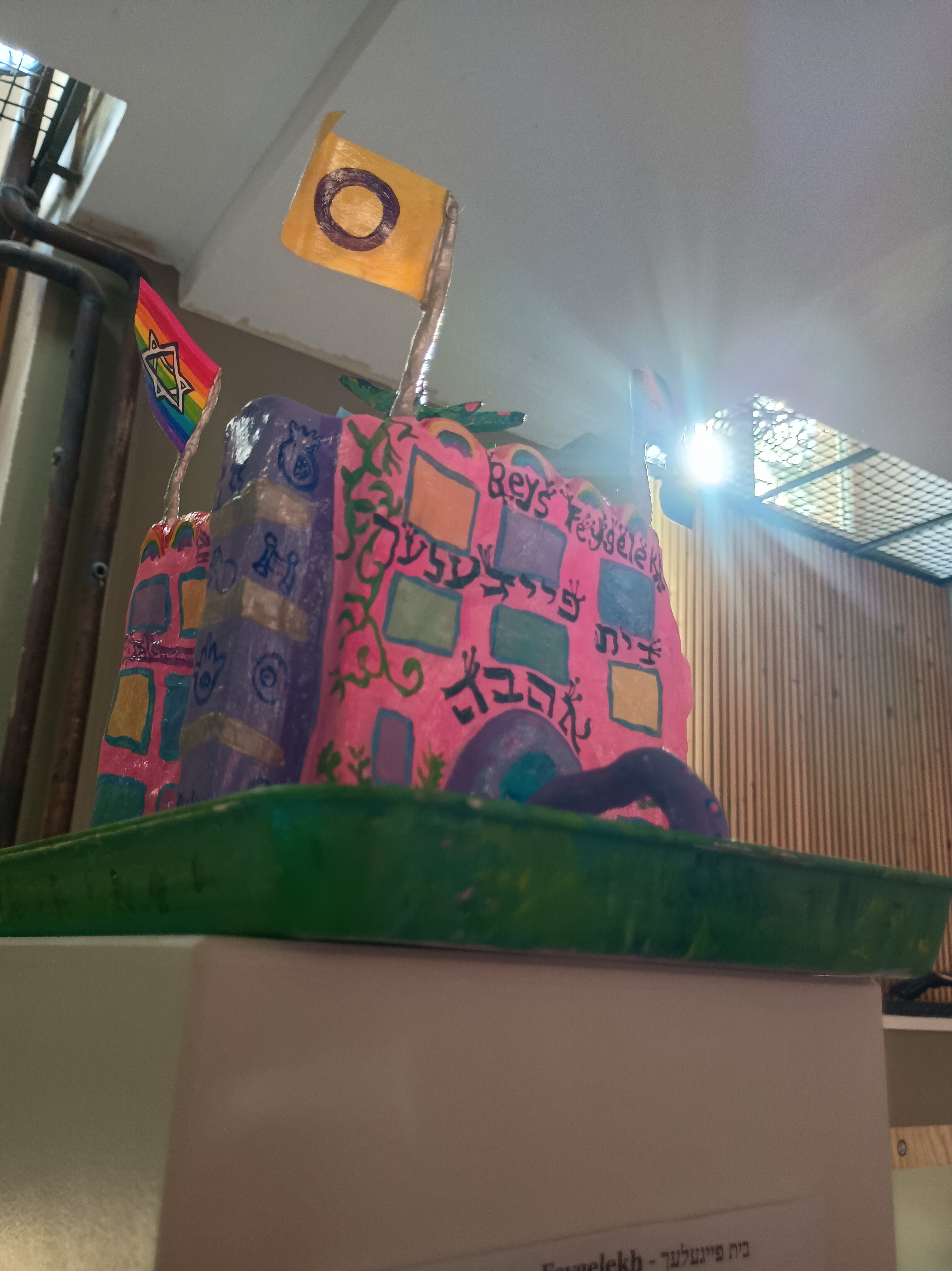 Beys Feygelekh is a fantasy model of a Trans Queer Jewish Community Center. Inspired by the Institute of Sexual Science, founded 1919 by Dr. Magnus Hirschfeld in Tiergarten – an oasis for LGBTQIA+ until it was stolen from us in 1933. The new structure is barrier-free, and every queer person respectful of Jewish-led spaces is welcome to the food, library, healthcare, and community.